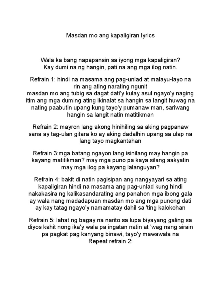 Masdan Mo Ang Kapaligiran Lyrics Pdf