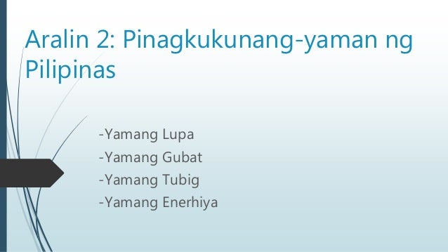 Mga tanong sa Tagalog 23 cards. Poverty deteriorating environment and. Kahulugan Ito ay mga yaman na binubuo ng yamang lupa tubig gubat at mineral.